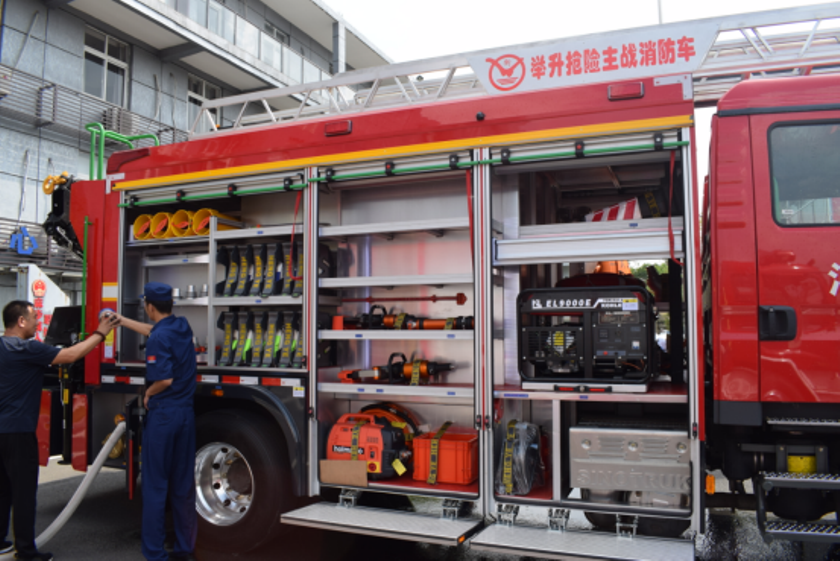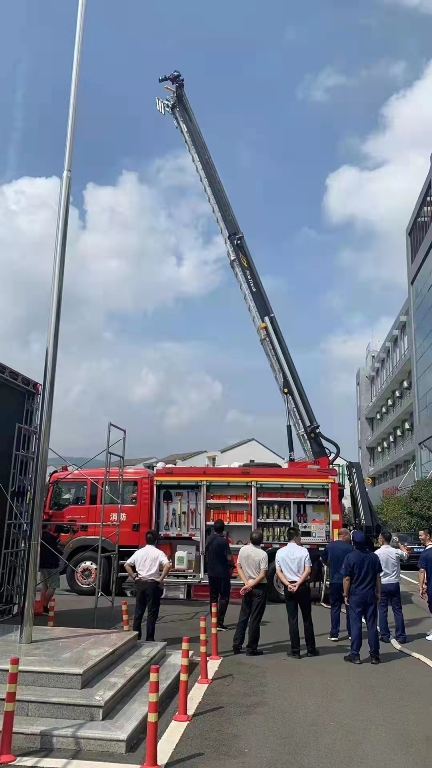 演示結(jié)束后,鎮(zhèn)政府各級(jí)領(lǐng)導(dǎo)及平陽縣大隊(duì)領(lǐng)導(dǎo)來到新購的舉升搶險(xiǎn)主戰(zhàn)消防車前,詳 細(xì)參觀、了解消防車輛技術(shù)性能,觀摩了新型消防車輛器材的展示和車輛各種功能操作 演示,并對(duì)我公司研制的新產(chǎn)品進(jìn)行了點(diǎn)評(píng),給予了高度的贊許,稱此款車型最大化的 滿足了老舊小區(qū)、狹窄街道、城鄉(xiāng)低建筑物等滅火救援工作的需要。