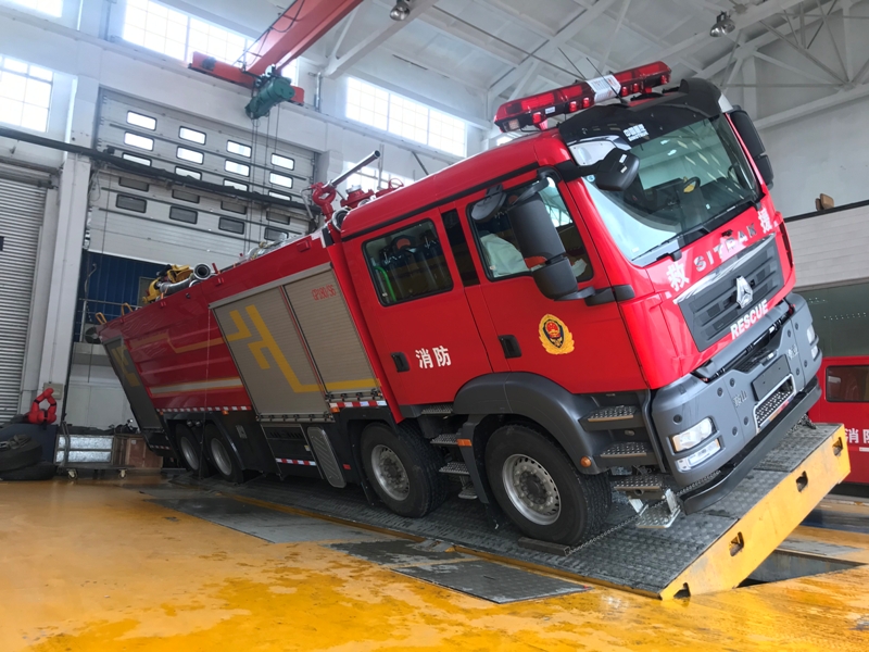 車輛底盤為ZZ5207TXFV471GF5底盤,發(fā)動機(jī)型號MC07H.35-60,功率為257kw,國六排放標(biāo)準(zhǔn),軸距4500mm,罐體材質(zhì)采用采用優(yōu)質(zhì)304不銹鋼板,容罐容量:水3600kg+B類泡沫900kg+A類泡沫200kg;消防泵為KSP1000(美國大力);壓縮空氣泡沫系統(tǒng):品牌:美國大力,型號:KSPBC1000/220型,型式:全自動集成式壓縮空氣A類泡沫系統(tǒng),消防炮為PLKD48手動及電控,升降照明系統(tǒng)YZH6-4.83CFA,牽引絞盤系統(tǒng)為杭州天銘FHW16500 整車器材箱卷簾門防水槽采用專用鋁合金開模型材,型材上加裝LED照明燈帶,使整車形成環(huán)繞式照明,既美觀且照明效果又好。器材箱卷簾門下部翻轉(zhuǎn)踏板,采用一體式鋁合金擠壓型材,模塊化組裝,增加了整車的品質(zhì)。箱體內(nèi)部器材框架采取了專用的的擋板型材,有效的保證了內(nèi)部器材固定的穩(wěn)定性,同時使器材標(biāo)牌整齊化一,清晰明了。壓縮空氣系統(tǒng)采用美國大力集成式系統(tǒng),結(jié)構(gòu)緊湊、性能優(yōu)良、操作簡便統(tǒng)一空間利用率高。空壓機(jī)流量為國內(nèi)目前CAFS系統(tǒng)中最大流量,可達(dá)105L/S,更好地滿足于壓縮空氣泡沫系統(tǒng)性能需求。