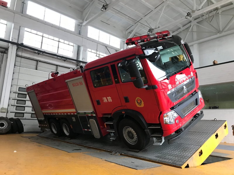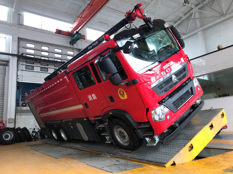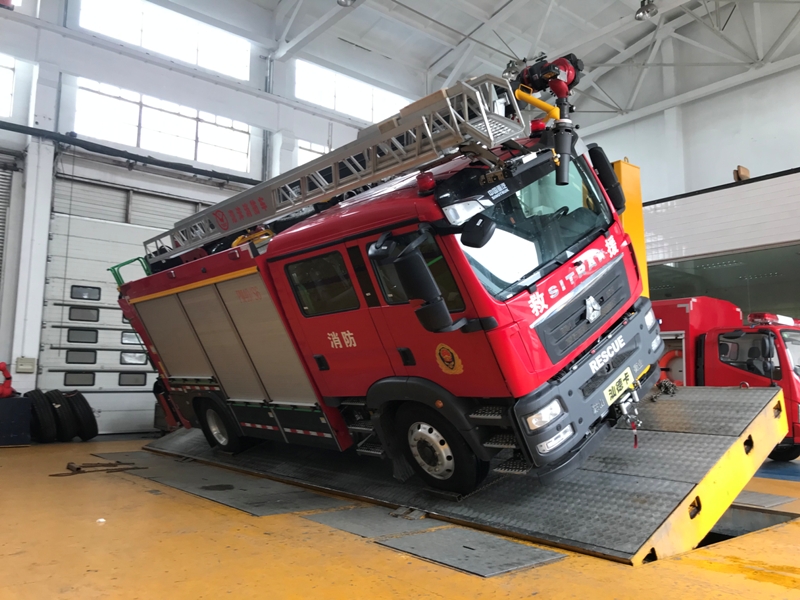 車輛底盤為豪沃ZZ5357TXFV464MF5底盤,發(fā)動機(jī)型號MC11.46-61,功率:341kw,國六排放標(biāo)準(zhǔn),軸距4600+1400mm,罐體材質(zhì):優(yōu)質(zhì)碳鋼板;容罐容量:水18000kg;消防泵為上海雄真CB10/80-XZ;消防炮為威斯特PSKD60W,舉升高度10.5米。 車輛外觀造型美觀,且內(nèi)部空間寬敞舒適,滿足作戰(zhàn)人員需求。整車器材箱卷簾門防水槽采用專用鋁合金開模型材,型材上加裝LED照明燈帶,使整車形成環(huán)繞式照明,既美觀且照明效果又好。器材箱卷簾門下部翻轉(zhuǎn)踏板,采用一體式鋁合金擠壓型材,模塊化組裝,增加了整車的品質(zhì)。箱體內(nèi)部器材框架采取了專用的的擋板型材,有效的保證了內(nèi)部器材固定的穩(wěn)定性,同時使器材標(biāo)牌整齊化一,清晰明了。